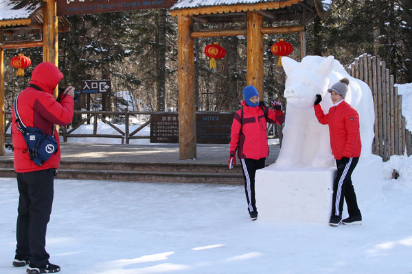 雪娃鬧春、福祿雙全、“豬”運(yùn)亨通、花鼠送福等造型各異的雪雕作品,吸引眾多游客前來游玩,拍照合影。這些雪雕作品全部由公司員工自行設(shè)計(jì)并制作而成,他們起早貪黑,頂風(fēng)冒雪,短短半月時間就打造出數(shù)種雪雕作品,不僅豐富和活躍了長白山冬季旅游,更為景區(qū)增添一抹亮麗的冰雪色彩。