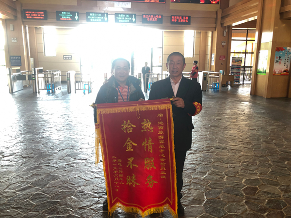 6月24日,池西游客服務(wù)中心副經(jīng)理王金鵬又接待了一位前來贈送錦旗的游客。因為安檢員王波在6月13日,拾到一部三星手機,并及時上交,通過多方了解才知道,失主是一位韓國游客,手機的及時歸還也為該游客省去了很多不必要的麻煩。所以,委托旅行社贈送錦旗一面,稱贊王波拾金不昧的精神。同時這也是這個月里池西游客服務(wù)中心第二次有游客贈送錦旗,這是對景區(qū)員工優(yōu)質(zhì)服務(wù)高度的認(rèn)可與贊揚。