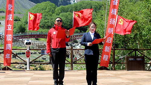 為慶祝中國共產(chǎn)黨成立103周年,6月27日,長白山北景區(qū)黨支部、北景區(qū)運營黨支部、北景區(qū)消防救援站黨支部以及民營企業(yè)天池黨支部在北景區(qū)溫泉廣場,共同開展了“同心向黨慶七一 奮楫揚帆啟新程”主題黨日活動。黨員、積極分子63人參加了此次活動。