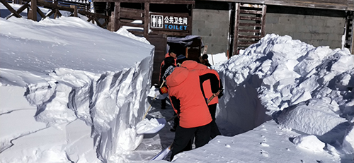 大雪足足下了兩天,給景區(qū)的清雪防滑工作造成了很大的壓力。此刻的天池游覽棧道已經(jīng)被大雪完全覆蓋,個別區(qū)域和通往衛(wèi)生間路段的積雪有一人多高。為了能讓天池景點盡早開放,主峰管理部經(jīng)理吳金明決定,先將衛(wèi)生間和B區(qū)游覽棧道清開1米寬,然后在不影響游客正常游覽的情況下,再拓寬至2米,以此來保證游覽棧道的最佳通行能力。